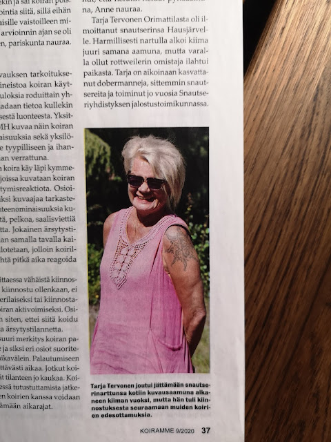 Pitänee vielä laittaa muistiin, että Suomen Kennelliiton Koiramme-julkaisun toimittajalle tuli huplatettua taannoisessa MH-luonnekuvauksessa ja kas, näkyypä iloinen pärstänikin